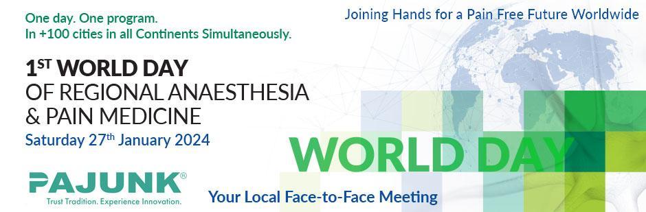 Slovenska sekcija za regionalno anestezijo (SSRA) v sodelovanju z Evropskim združenjem za regionalno anestezijo (ESRA) v soboto, 27. januarja 2024 v UKC Ljubljana organizira 1. svetovni dan regionalne anestezije in terapije bolečine. Dogodek je namenjen specialistom anesteziologom in specializantom anesteziologije.
